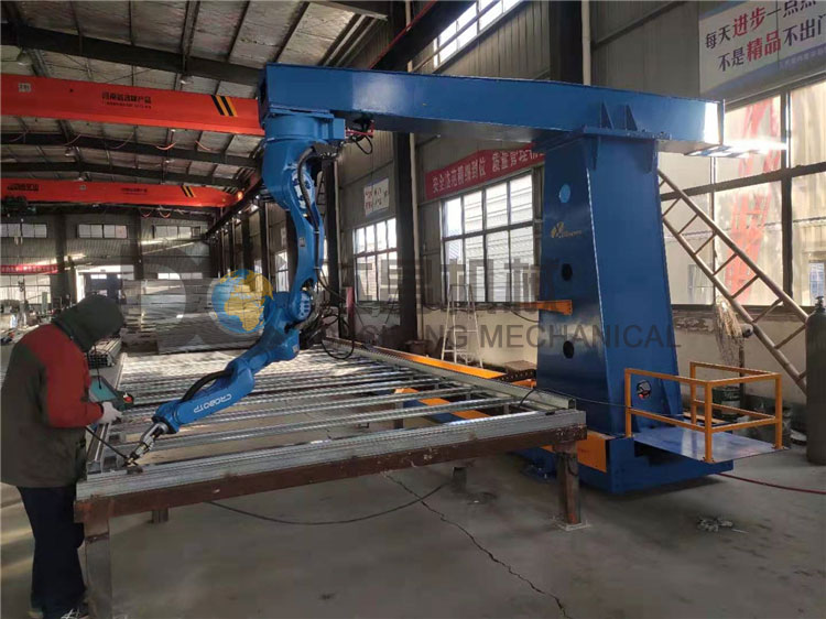 機器人系統集成是以工業機器人為核心單元,結合先進的焊接設備、先進的焊接工藝技術以及系統工程技術,以其應用范圍廣泛、工藝靈活多樣、加工產品精度高、質量穩定、自動化程度高、柔性化和智能化等諸多優點,正越來越被各行業廣泛使用,成為現代焊接業的重要組成部分。我司設計的集裝箱焊接吊臂機器人,采用懸臂增加焊接機器人的行程,可用于多種鋼結構集裝箱焊接工作。